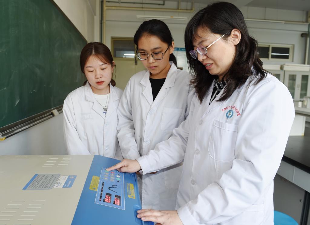 贾晓梅教授指导学生操作实验仪器