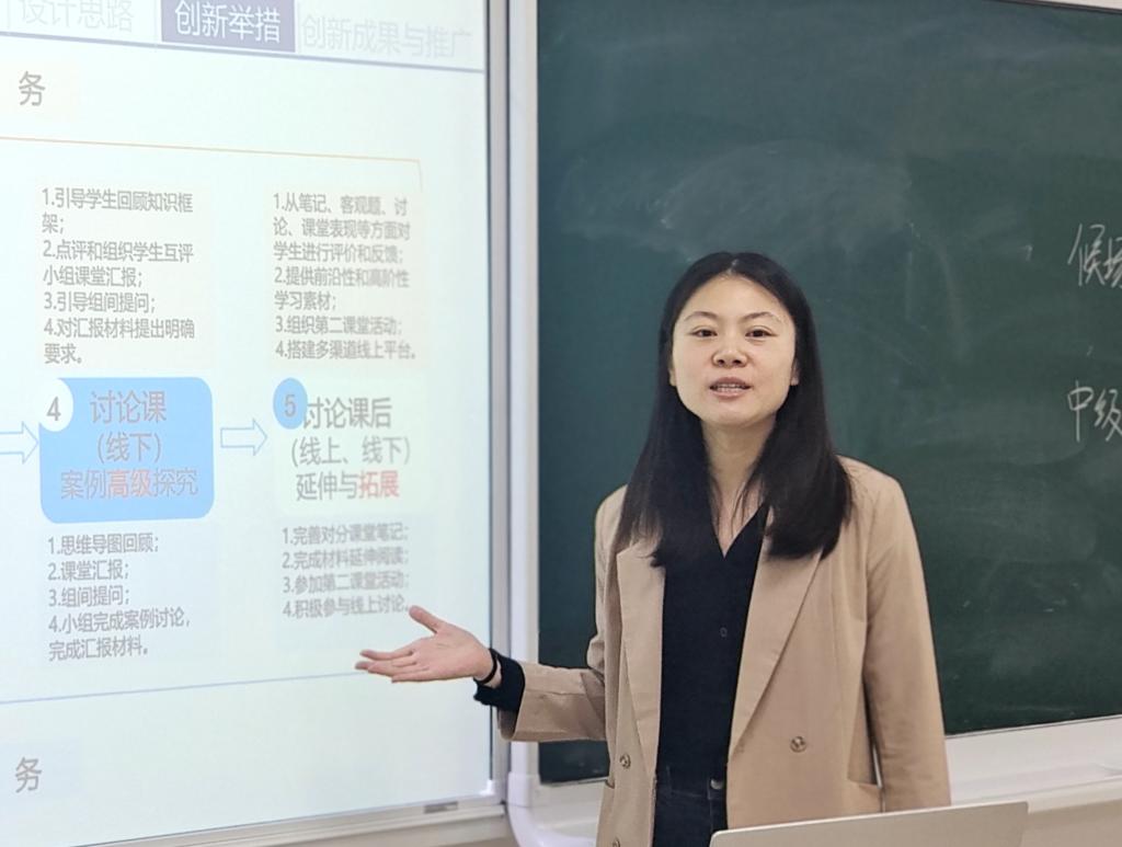 时刻将学生放在教学的主体地位。通过参加教师教学创新大赛,梁若雪进一步加深了对“学生主体”的认识和理解。从教学理念创新到课程目标的修订都是从立足学情分析展开的,教学方法创新的初衷和落脚点都是希望学生成为课堂教学的构建者。在教学设计上,讲每个知识点之前,要有问题的导入,让学生对该话题产生兴趣;对于有争议的问题,教师要充分发挥引导作用,让学生去思考甚至争辩;在教学过程中,能预计到学生可能会在哪些地方有疑惑以及如何解答这些疑惑。有效的教学创新不是教师个人的演讲、表演,也不是游戏式的互动,而是要不断启发学生,唤起他们对教学内容的兴趣和思考,进而系统阐述、深度剖析。