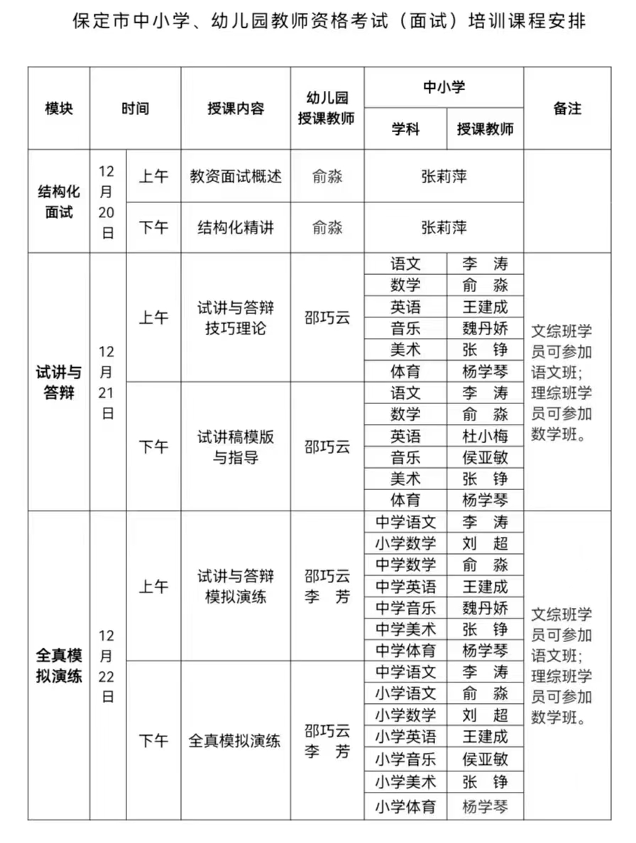 为深入学习贯彻党的二十大精神,服务科教兴国战略,落实省委、市委工作要求,推进保定教育“三年大变样,六年大改观”,提升在校生和社会人员的应用型培养和就业竞争力,金年会娱乐官网首页特举办保定市中小学、幼儿园教师资格考试(面试)大型公益培训班,考生免费参加学习。
