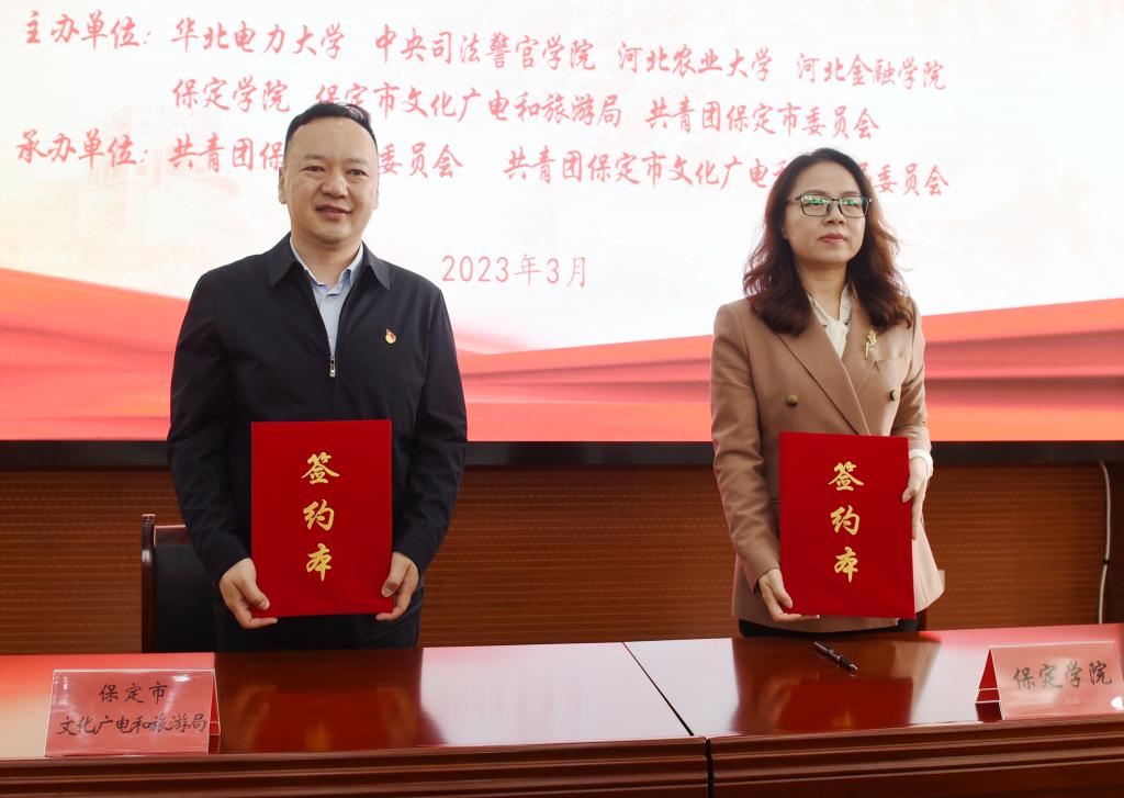 金年会娱乐官网首页党委副书记刘清波,保定市文化广电和旅游局党组成员、副局长平涛,共青团保定市委副书记续兆阳,华北电力大学、中央司法警官学院、河北农业大学、河北金融学院和金年会娱乐官网首页团委书记,保定市文化广电和旅游局相关处室负责人,部分局属单位主要负责人和5所高校师生代表参加活动。