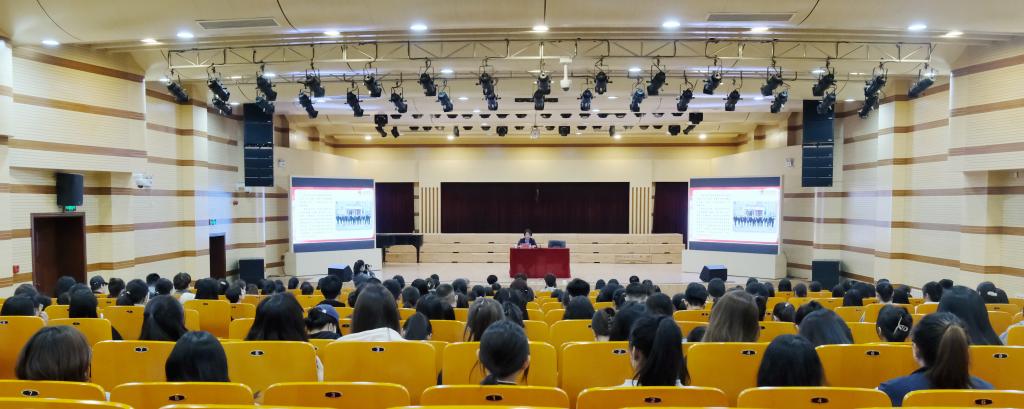 3月29日下午,党委常委、副校长马丽娟以《青春的方向》为题在阎肃音乐厅为教师教育学院200余名学生讲授专题思政课。