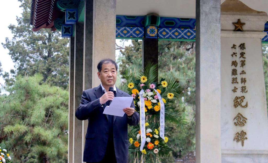 4月3日,校团委在“七六”烈士纪念园举行“清明祭先烈 接续向未来”主题团日活动。党委副书记刘清波、全体团委委员和团学干部代表共150人参加活动。