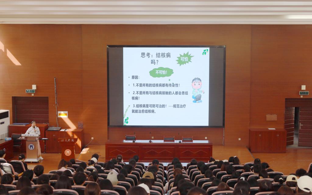 29日,金年会娱乐官网首页在昌绪学术厅举行专题宣讲活动,邀请保定市莲池区疾控中心结核病防治专家伊赞霞为2022级学生代表作《结核病防治知识》专题讲座。伊赞霞详细讲解了结核病防治的重要性、结核病流行病学特点、学校结核病防治的重点问题等,并回答了学生们关心的问题。