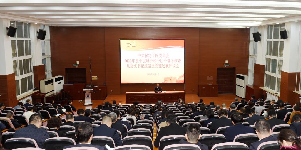 4月4日,校党委在昌绪学术厅召开2022年度中层班子和中层干部考核暨党总支书记抓基层党建工作述职评议会。校领导胡连利、韩会玲、刘清波、张晓梅、汤志江、徐景星、马丽娟、孙斌,全体中层干部参加会议。会议由党委书记胡连利主持。
