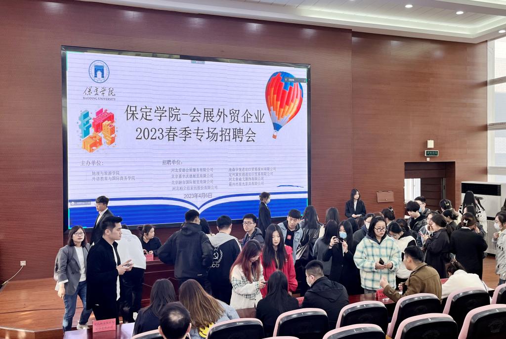 为切实推进2023届毕业生就业工作,做好用人单位和毕业生的对接服务,金年会娱乐官网首页积极行动,抢抓春招关键时期,全力攻坚促就业。4月6日,金年会娱乐官网首页邀请河北爱德会展服务有限公司、北京嘉宇沃德展览有限公司、北京融合国际展览有限公司、海森华宠进出口贸易涿州有限公司、河北鲁迪戈服饰有限公司等多家主营会展、外贸业务的省内外知名企业来校召开就业洽谈暨专场招聘会。
